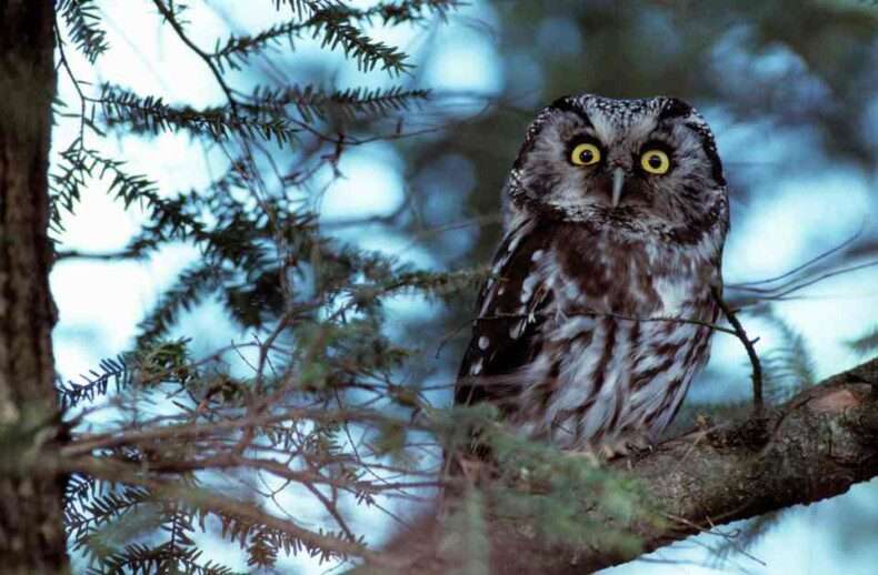 Boreal owls are cavity nesters, relying on mature and old-growth trees for nesting sites, often utilizing abandoned woodpecker holes. These forests also provide the dense canopy cover and structural complexity needed for hunting. Their primary diet consists of small mammals, such as voles, shrews, and mice, which are abundant in undisturbed forest floors with rich leaf litter and understory vegetation.